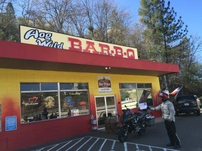 Our stops in Placerville were the Placerville P.O. for the Town Name with 11 letters bonus, and the Hog Wild Barbecue for different ways one can spell Barbecue! Two variations found here, but only one posted..