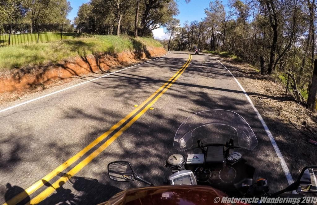 Al wanted to lead the way out of here to Placerville for our next bonus, he used to live around this area before he moved to Sacramento. I let him run before me, and he sometimes succeeded in pulling away from me in the turns, that R1200GSA has maddening power pulling out of turns..much more than my DL1000 has.